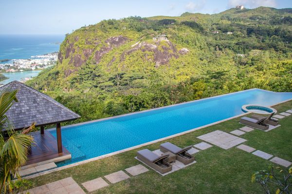 A contemporary six-bedroom tropical villa located within an exclusive gated estate in the Seychelles. Nestled in a serene natural setting, this luxurious retreat is thoughtfully designed to harmonize with its surroundings while offering breathtaking views of the inner islands and the Indian Ocean. Accommodating up to 12 guests, the villa features modern architecture, expansive indoor and outdoor living areas, and a dedicated full-service staff—making it the perfect hideaway for an indulgent Seychelles escape.